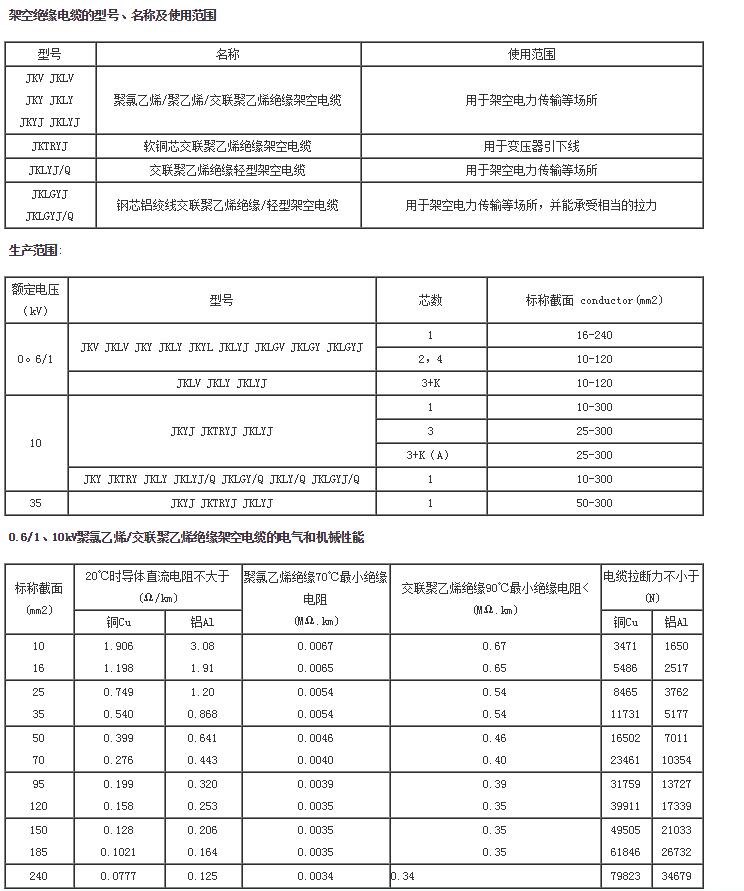 本產(chǎn)品適用于額定電壓35kV及以下的架空電力線路。電纜的機械性能和電性能符合國家標準GBl4049《額定電壓10kV、35kV架空絕緣電纜》和GBl2527《額定電壓1kV及以下架空絕緣電纜》。其中鋼芯鋁絞線交聯(lián)聚乙烯絕緣架空電纜的纜芯結(jié)構(gòu)參照國標GB/T1179《圓線同心絞架空導線》,電纜的電性能和絕緣的機械物理性能符合國標GBl4049及GBl2527。